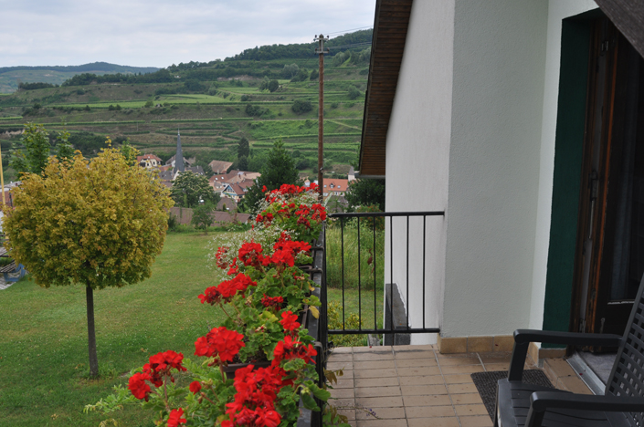 Ein Blick aus unserem Gästezimmer, über den Balkon enthüllt die sanfte Silhouette der Vogesen und bietet einen wunderbaren Blick ins Elsaß.